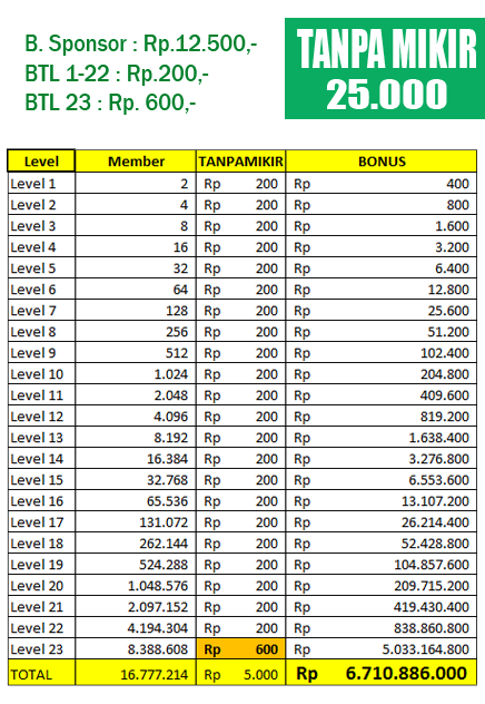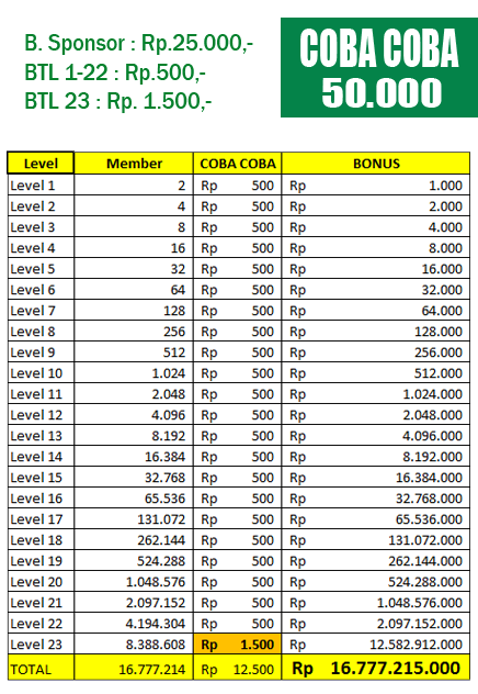 bina dan STOPBekerja dengan cerdas. Cukup ajak 2 reseller, bina mereka, duplikasikan dan STOP. Anda sudah tidak perlu kerja lagi. Biarkan system berjalan dengan sendirinya dan nikmati hasilnya. -